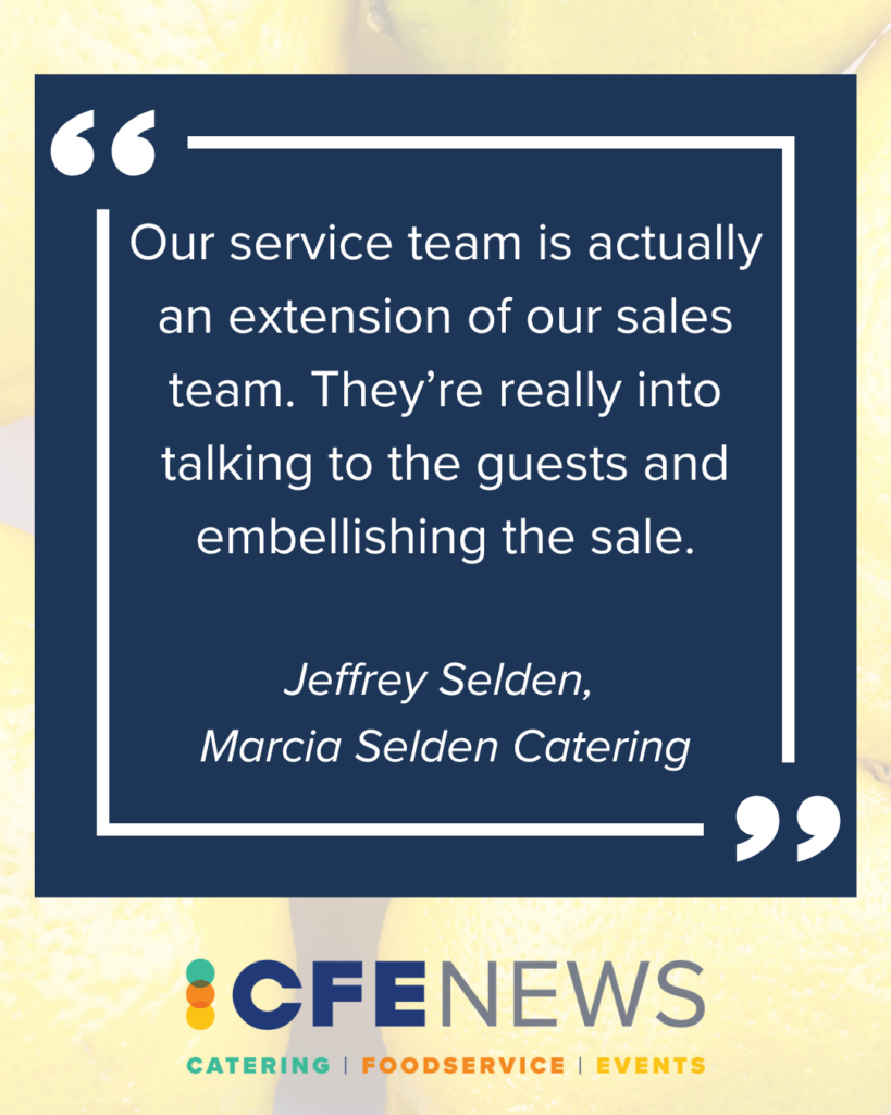 Robin Selden traced Marcia Selden Catering’s staffing success directly to the culture the company has built over decades—with some employees celebrating 30 years with the company. “There’s a reason for that; it’s because we take really good care of them, and that is how we bring people in,” she said. Staffers will speak highly of the company to their friends, who often will be interested in working there despite having no experience in catering. “Frankly, I’d rather have that, because I want to train them to do it our way,” said Robin.
