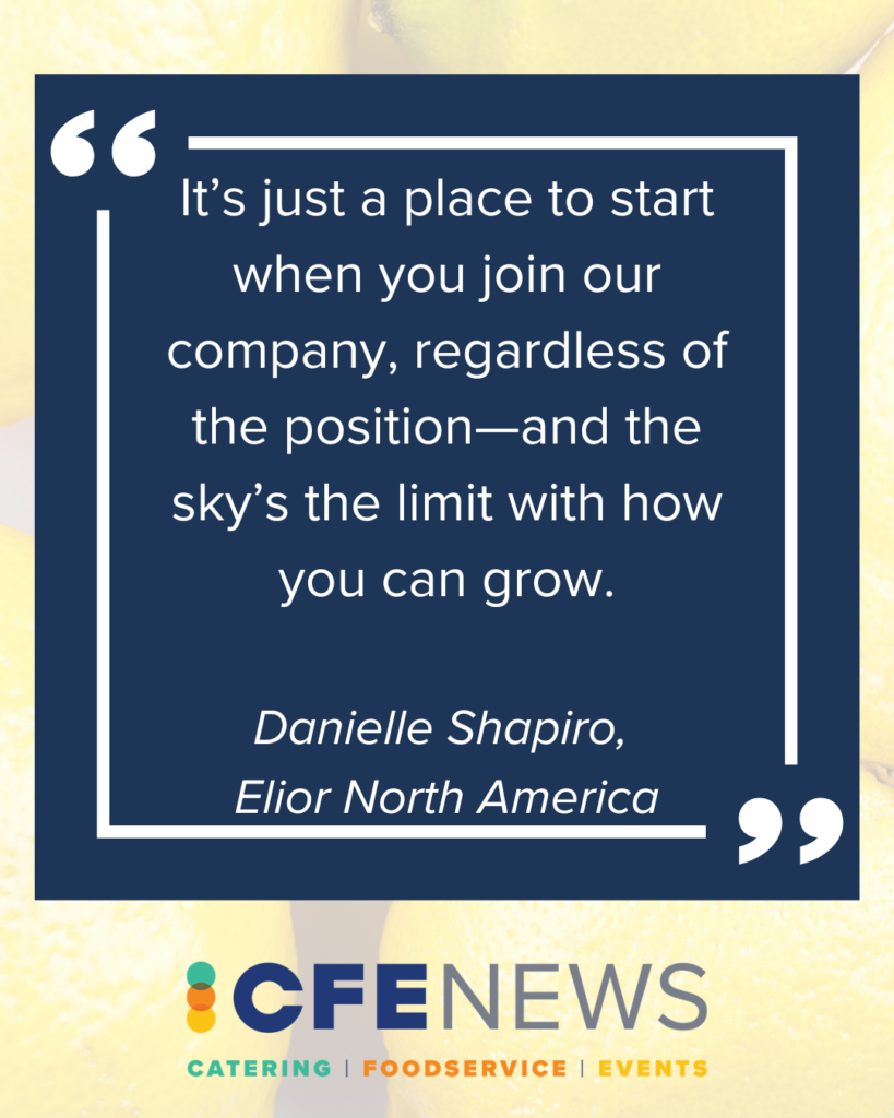 For Danielle Shapiro, the advantage of working within a large company like Elior North America is the sheer breadth of opportunity available to employees. “One of the things that we really promote is it’s just a place to start when you join our company, regardless of the position—and the sky’s the limit with how you can grow,” she said.