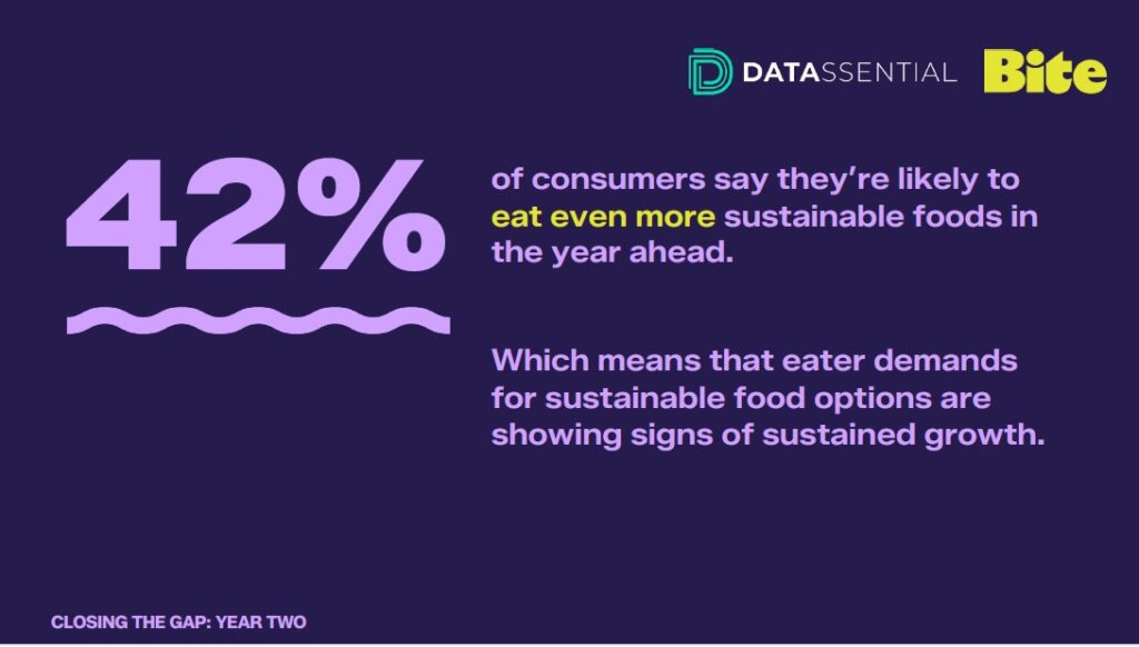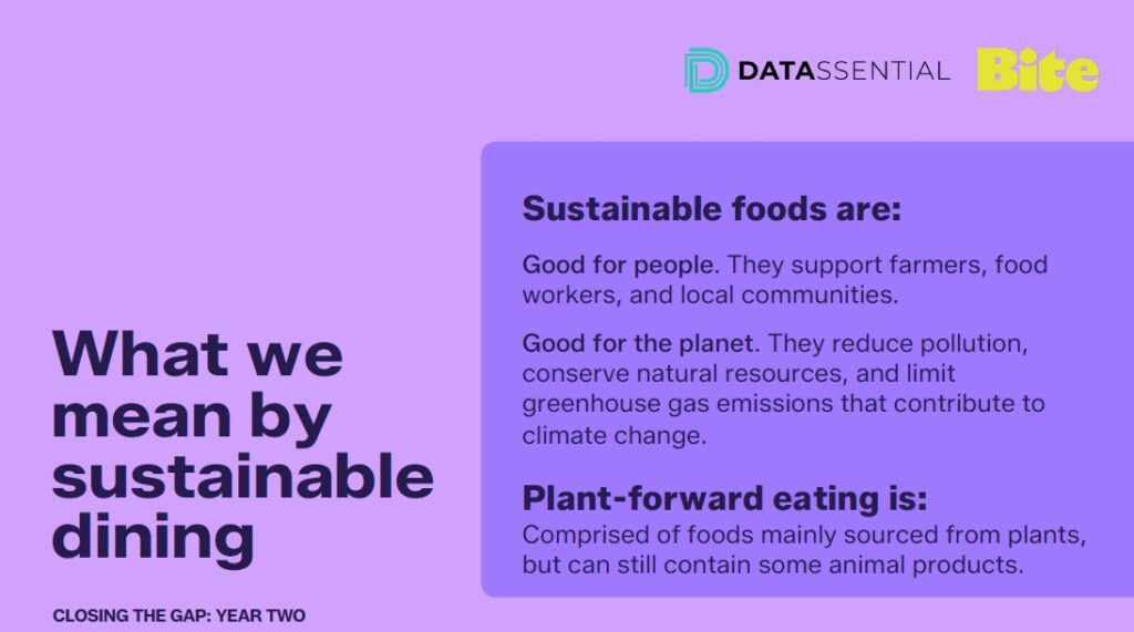 Consumer interest in climate-smart dining is growing—but foodservice operators aren’t keeping pace. That’s the central finding of the second year of “Closing the Gap: Eater and Operator Perspectives on Sustainable Dining,” a multi-year research study from BITE: Building Impact Through Eaters and Datassential.